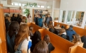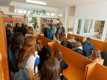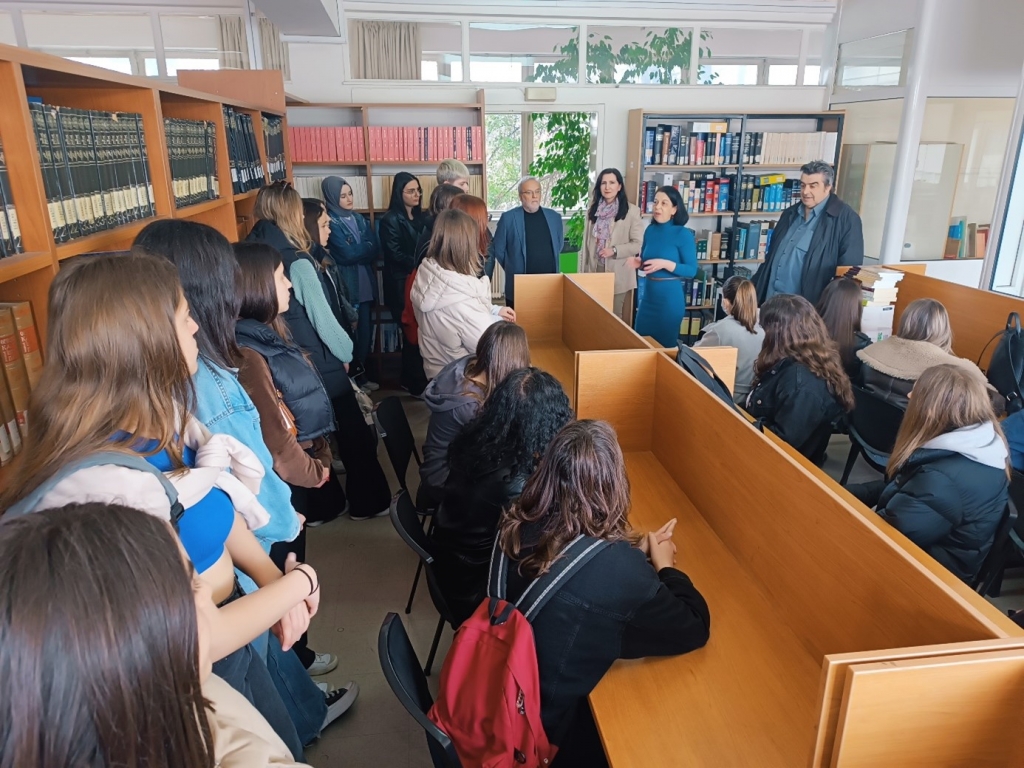 Στη συνέχεια, οι μαθητές και οι συνοδοί καθηγητές ξεναγήθηκαν στο βιβλιοστάσιο και στο αναγνωστήριο της βιβλιοθήκης του Τμήματος και ενημερώθηκαν από το διοικητικό προσωπικό, μεταξύ άλλων, για το απόθεμα συγγραμμάτων που φυλάσσεται σε αυτή, για τους τρόπους χρήσης της βιβλιοθήκης, αλλά και για τα πολλαπλά οφέλη που μπορεί να προσφέρει ο δανεισμός και η ανάγνωση βιβλίων.
