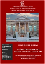 Το Τμήμα Ιστορίας και Εθνολογίας της Σχολής Κλασικών και Ανθρωπιστικών Σπουδών του Δημοκριτείου Πανεπιστημίου Θράκης διοργανώνει Επιστημονική Ημερίδα με θέμα «Ο ΛΑΪΚΟΣ ΠΟΛΙΤΙΣΜΟΣ ΤΗΣ ΘΡΑΚΗΣ ΚΑΙ Η ΔΙΑΧΕΙΡΙΣΗ ΤΟΥ», η οποία αποτελεί τιμητικό αφιέρωμα στην Ιδρύτρια και Πρόεδρο του «Εθνολογικού Μουσείου Θράκης» κυρία ΑΓΓΕΛΙΚΗ ΓΙΑΝΝΑΚΙΔΟΥ, με αφορμή την παραχώρηση της επιστημονικής διαχείρισης του Μουσείου στο Τμήμα Ιστορίας και Εθνολογίας και στο "Εργαστήριο Λαογραφίας και Κοινωνικής Ανθρωπολογίας".