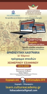 Δυο εξαμηνία μαθήματα για την επιστήμη της λαογραφίας από την Ακαδημία Λαϊκού Πολιτισμού & Τοπικής Ιστορίας Θρησκευτική Λαογραφία Φιλολογική Λαογραφία (β κύκλος)