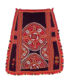 Παναούλα, σαρακατσάνικη μάλλινη τραπεζιόσχημη ποδιά αρραβωνιασμένης. Θράκη, αρχές 20ού αιώνα.