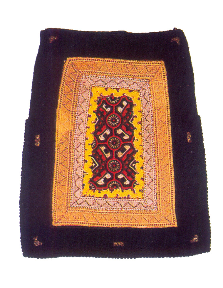 Παναούλα, σαρακατσάνικη μάλλινη τραπεζιόσχημη ποδιά αρραβωνιασμένης. Θράκη, α΄μισό 20ού αιώνα.