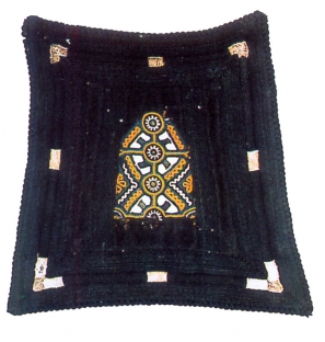 Παναούλα, σαρακατσάνικη μάλλινη τραπεζιόσχημη ποδιά αρραβωνιασμένης. Θράκη, α΄μισό 20ού αιώνα.