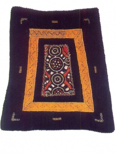 Παναούλα, σαρακατσάνικη μάλλινη τραπεζιόσχημη ποδιά αρραβωνιασμένης. Θράκη, α΄μισό 20ού αιώνα.