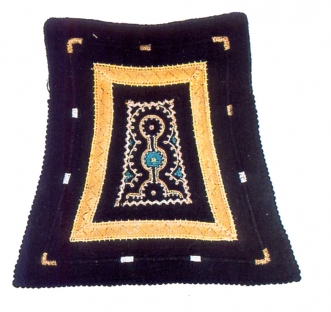Παναούλα, σαρακατσάνικη μάλλινη τραπεζιόσχημη ποδιά αρραβωνιασμένης. Θράκη, α΄μισό 20ού αιώνα.