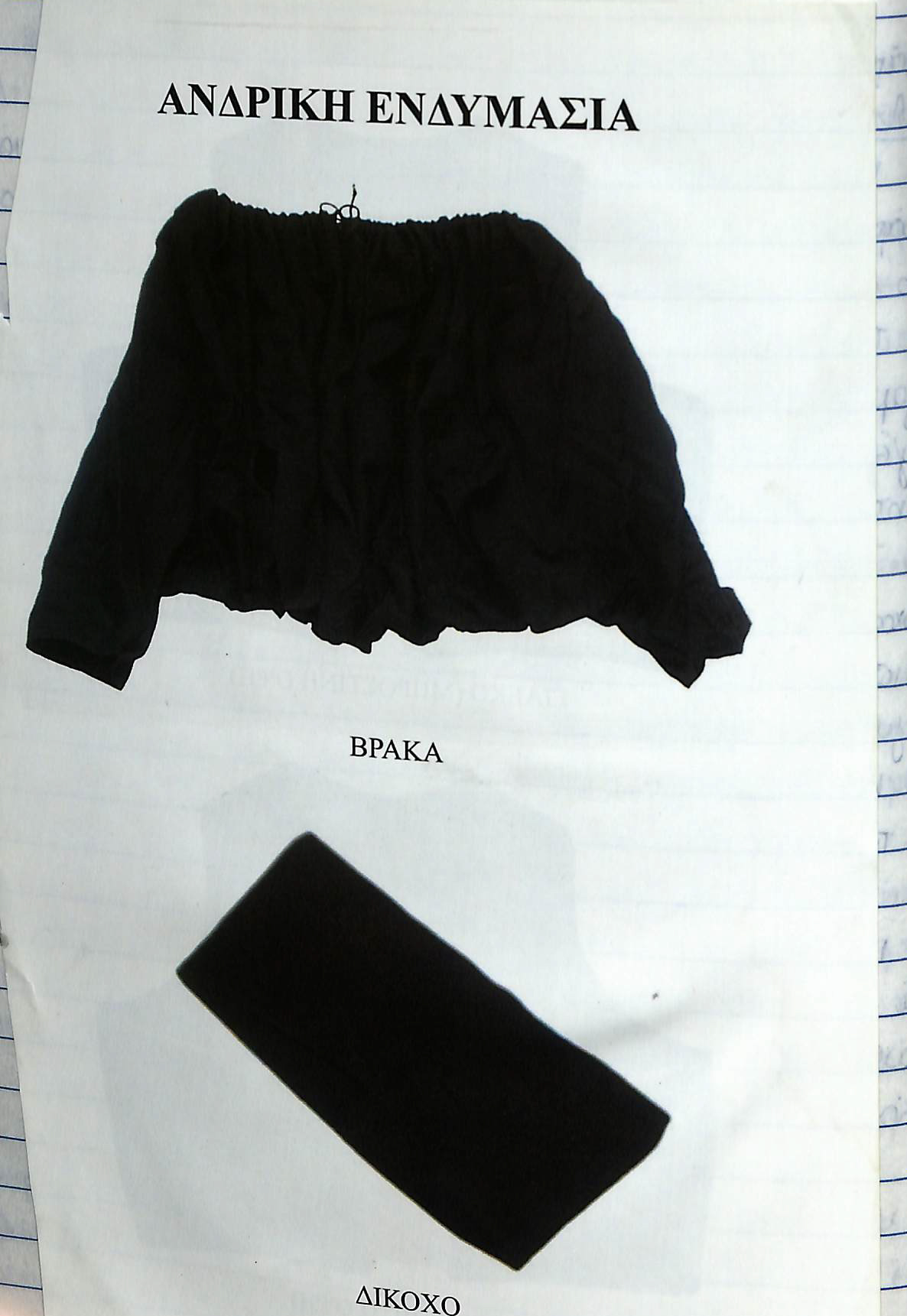 Κλείνοντας την περιγραφή της ενδυμασίας αξίζει να πούμε ότι οι πιο μεγάλοι φορούσαν τα ίδια ρούχα αλλά σε πιο σκούρα χρώματα αλλά και ότι οι χήρες τα φορούσαν όλα μαύρα εκτός από το πουκάμισο που ήταν λευκό.