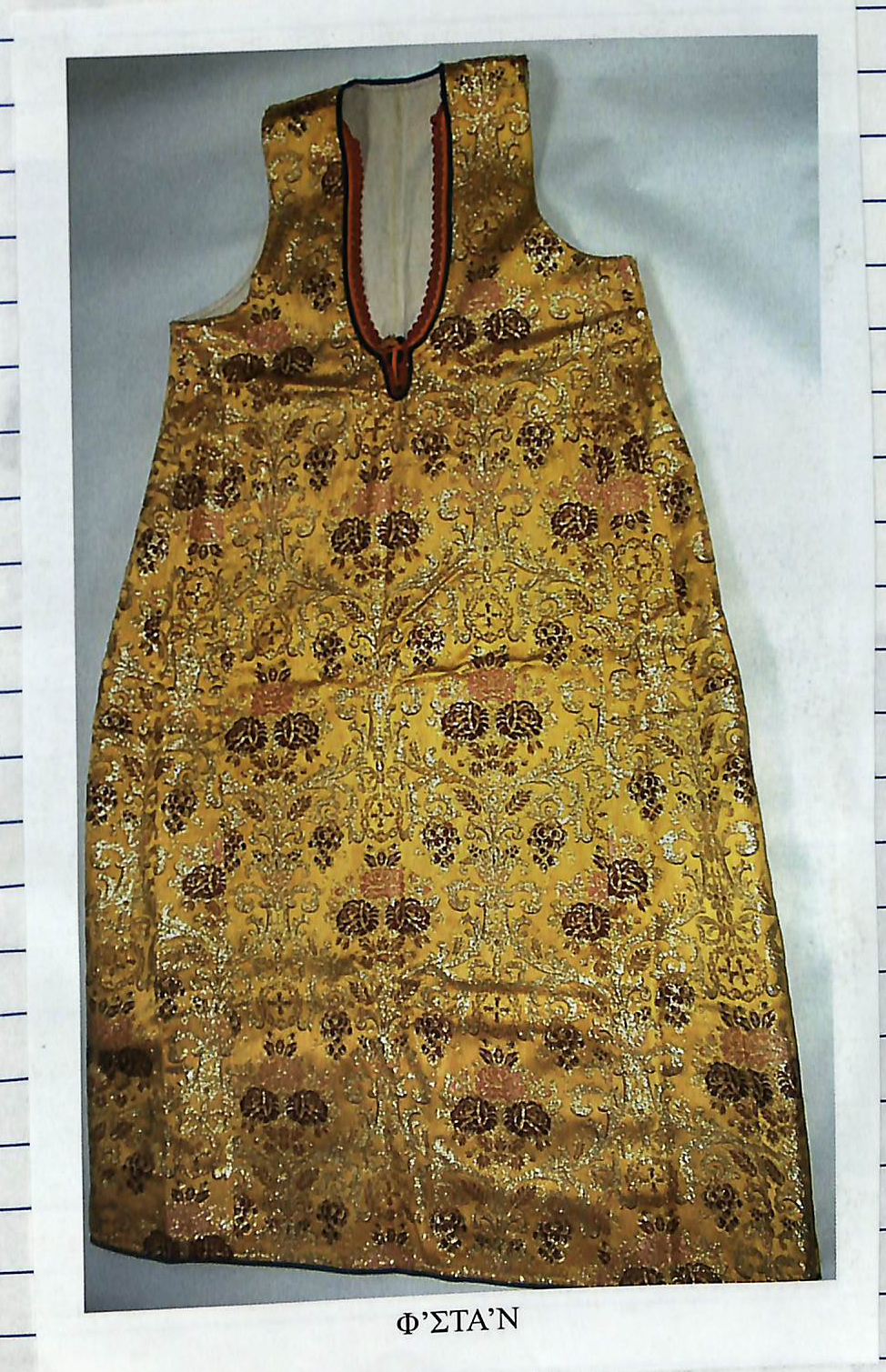 Μέσα από το «φ΄στάν» φορούσαν το «πουκάμισο» που κάλυπτε τα χέρια και το ντεκολτέ και έφτανε μέχρι τον αστράγαλο. Κάλυπτε όλο το λαιμό και έκλεινε με ένα κουμπί μπροστά στο λαιμό. Μπροστά απ’ το σημείο που ήταν το κουμπί και κατά μήκος του ντεκολτέ υπήρχε άνοιγμα περίπου 15 εκατ., κατά μήκους του οποίου υπήρχε δαντέλα. Δαντέλα υπήρχε και στις άκρες των μανικιών και πλεκόταν από τις γυναίκες που το φορούσαν με λεπτή κλωστή και βελονάκι.