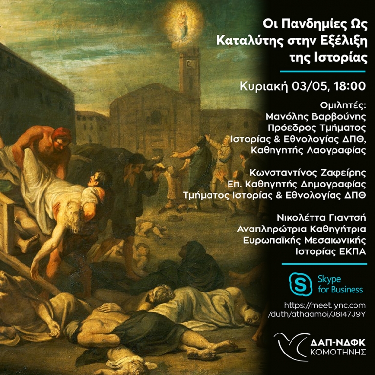 Η ΔΑΠ-ΝΔΦΚ Κομοτηνής (Τμήμα Ιστορίας και Εθνολογίας) οργανώνει μέσω Skype for Business διαδικτυακή ημερίδα την Κυριακή 3 Μαΐου 2020 και ώρα 18.00 με τίτλο: